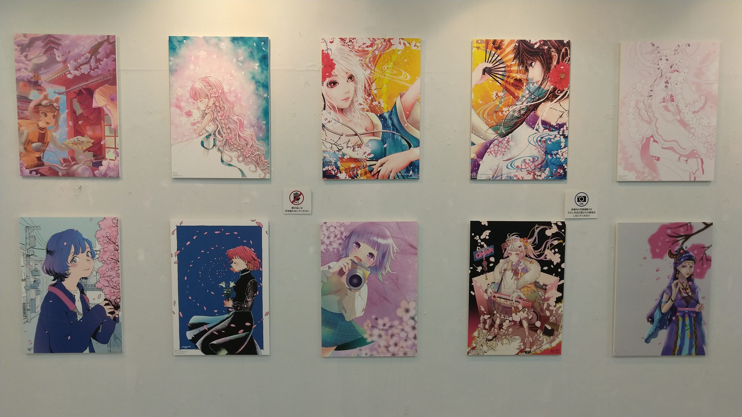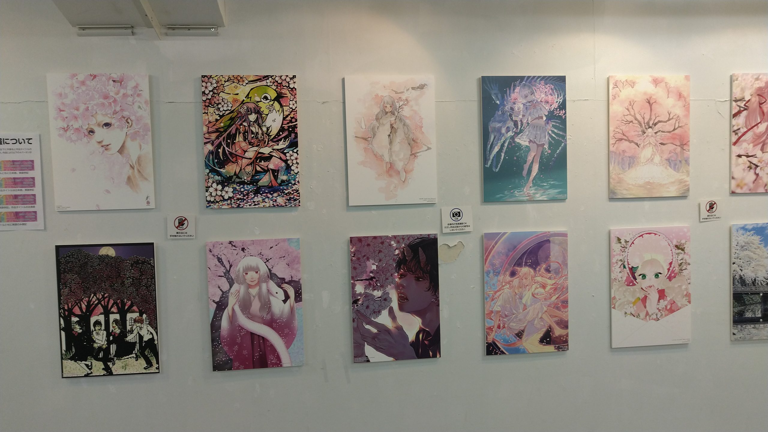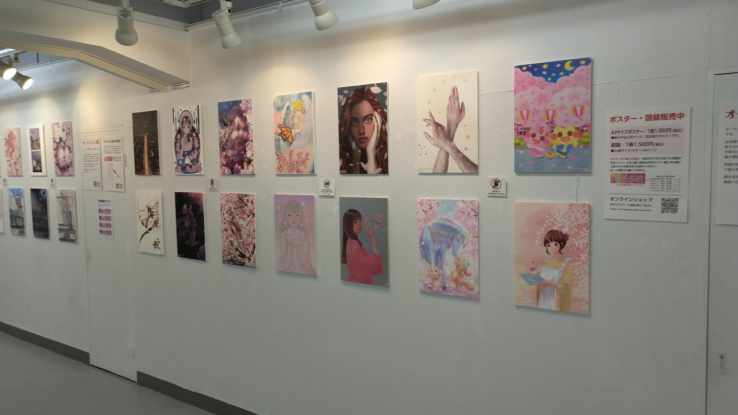 ギャラリー内、作品の飾られている壁の様子は下記のような感じです。